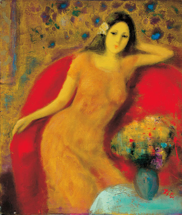 紅沙發的少女