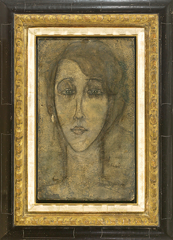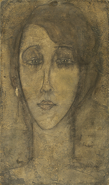 此次拍品莫迪里亞尼的《女人肖像》(芮妮)與上述收藏於巴西美術館的藝術家油畫風格即為相似。經專家亞瑟.方斯提耶先生鑑定為1916年末至1917年初期間藝術家以水粉顏料畫在素描硬紙板上的創作。右側藝術家簽名的下方,甚至可以看見標註:「芮妮」的字跡。1961年法國詩人:尚.考克多也為其開立作品保證書,說明曾在奇斯林的工作室中見過構圖類似此拍品的莫迪里亞尼油畫。主角人物的面容占據整個畫面,捲曲線條的短髮,搭配雙眼神柔和,甚至看得到長長睫毛和閃爍眼光的構圖。畫中人物「凝視」觀者的靈魂,也見證前衛的巴黎與義大利古典傳統在莫迪里亞尼身上激盪的火花。