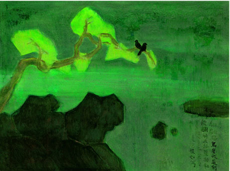 鄭在東,1953年出生台北市,電影工作出身,活躍於二十世紀80、90年代的台灣藝術界,鄭在東並不是一位傳統的水墨畫家,他同時亦採用油彩作畫並從事陶瓷創作,早年受到西方表現主義和超現實主義藝術的影響,使他的創作中蘊含了當代繪畫中的開放元素,作品中瀰漫著一股懷舊、傷逝的氣氛,不論是記述個人生活,或是關注自我內心,都以一種冷色調呈現,晦澀陰暗的色彩,呈現出一種冷冽奇特的美感,似乎很擅長製造一種暗含著返回自我深處的,孤絕陰鬱的氣氛,鮮豔的色彩在他的作品中成了超現實場景的點綴。
