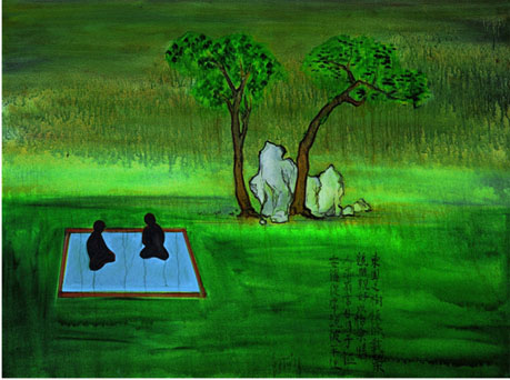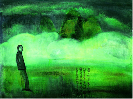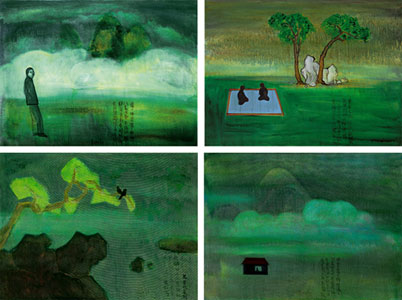 1998年的《停雲》四連作,一作畫中有詩, 詩中有畫, 淡淡情愫充滿況味,藝術家將自己的生活情狀融入創作之中,堪稱為鄭在東的經典代表作。