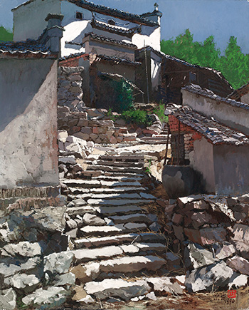 簽名畫背:〈古居〉25F 龎均 PANG JIUN 1990