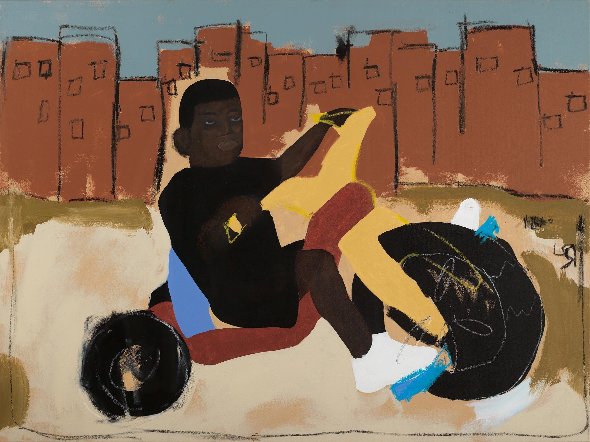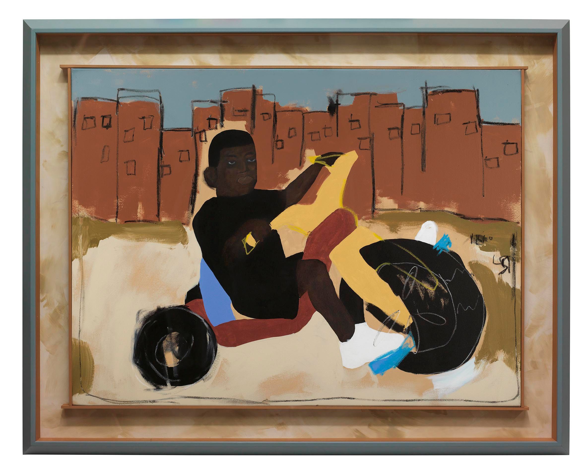 Jammie Holmes is a self-taught painter from Thibodaux, Louisiana, whose work tells the story of contemporary life for many black families in the Deep South. Through figurative works and tableaux, Holmes depicts stories of the celebrations and struggles of everyday life. Growing up 20 minutes from the Mississippi River, Holmes was surrounded by the social and economic consequences of America's dark past, where reminders of slavery exist alongside labor union conflicts that have fluctuated in intensity since the Thibodaux Massacre of 1887. His work is a counterpoint to the romantic mythology of Louisiana as a hub of charming hospitality, an idea that has been perpetuated in order to hide the deep scars of poverty and racism that have structured life in the state for centuries. Despite the circumstances of its setting,
