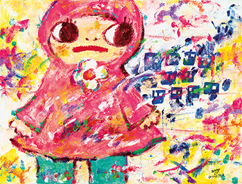 一雙水汪汪的大眼睛、時而有著秀麗長髮、時而搭配俏麗造型,造型多變的女孩們在六角彩子手中一一誕生,每個女孩都好似藝術家六角的豐富面向,有時帶有活潑個性有時溫柔。本季春拍特此選集共六件六角彩子的畫布和紙板作品,六角彩子貫徹初衷,使用手指代替畫筆沾染壓克力顏料,創作出令人感到歡欣的畫面。從背景中繽紛交錯的色彩到一個個女孩們的標緻的臉龐、隨心所欲的塗鴉方式,彷彿可以見到藝術家源源不絕的靈感,及充滿熱情的創作動力。