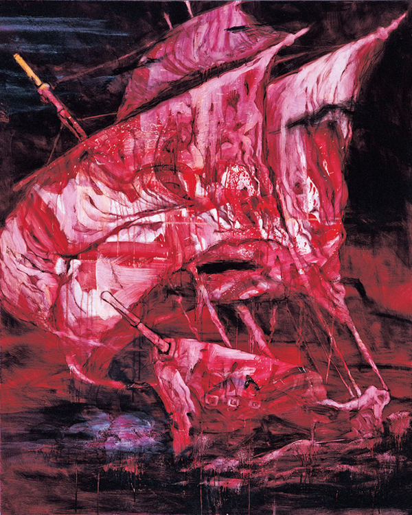 從『五花肉』系列作品來看,由「肉兵器」衍伸肉戰爭之創作思考概念是藝術家返回記憶的庫房,挖掘根源以對應於現實環境的挫折,將孩童時代對於戰爭玩具喜好的甜蜜單純慾望,以再現的方式表達成年後於海外求學時面對異國文化下的衝撞反思,這些以玩具手槍、飛機、坦克車和潛水艇為主體的『肉兵器』,在由不同深色累積滲透出來的多層次背景烘托下,營造出一種由肉體堆疊出的異樣血紅世界;象徵慾望的柔軟肉體成了血腥的戰爭殺人工具,記憶中的西洋玩具不再只是玩樂中的打殺,反而更顯得殺氣騰騰,在一片血肉模糊的構圖下,隱喻出藝術家對來自於西方強勢文化殖民下的自覺與抵禦,並從自我的意識源頭開始,揪出這個時代大多數台灣人在文化認同上的盤根錯節與糾葛,像是在一片漆黑的殺戮戰場上,對於看不見的異國文化展開絕地反擊,進行文化主體的追尋,只是在伸手不見五指的暗色世界裡,常陵以略帶挑釁與冒險意味的探索向前衝撞,總讓人覺得有股恐懼的暗流汩汩流出。