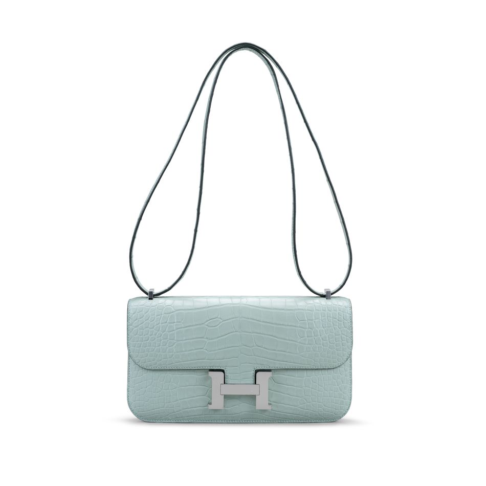 霧面湖水綠色ALLIGATOR短吻鱷皮CONSTANCE 1-ELAN包附銀色金屬配件