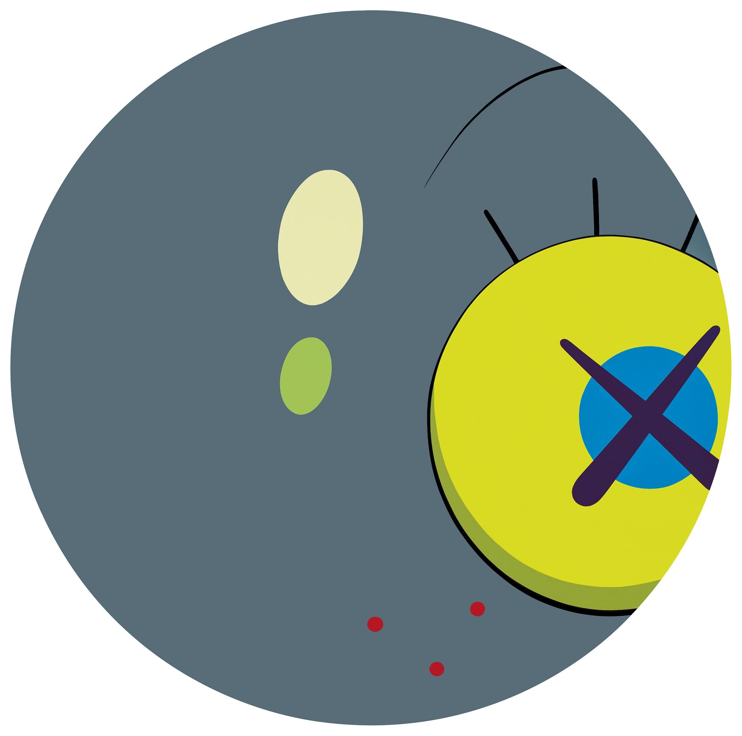 The "XX" symbols have become the mark of KAWS' work, appearing on all of his favorite trendy culture or animated cartoon characters. Rehashed by KAWS, classic cartoon figures such as Mickey Mouse, The Smurfs, The Simpsons, SpongeBob SquarePants, and Snoopy have accompanied a generation of children growing up. KAWS deconstructed these images of classic cartoons and transformed them into even more abstract artistic formats, becoming new images that integrate the artistic vocabularies of KAWS. Within the round canvas of Don't Sink, the image of SpongeBob SquarePants can still be distinguished. This image originates from the 2008 KAWSBOB exhibit at the Galerie Perrotin in Miami Beach. Just like previous works by KAWS, that series includes all the well-known images, aiming to create art that exceeds language and culture, that is also easy to understand.