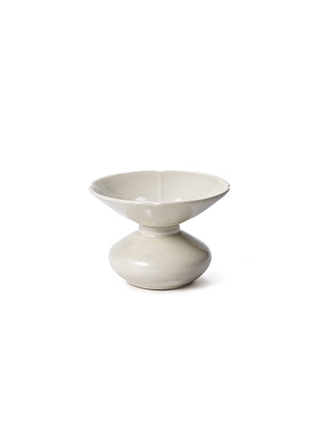 巩县窑为唐代北方主要的窑场,隋代已生产青瓷平底碗及高足盘等,唐代生产白瓷、黑瓷、绞胎、单色釉等器物,白瓷中有一部分作为贡品。渣斗上部形状如盘,下部呈罐状,中部束腰,平底无釉。造型端正,胎质细腻坚硬,其胎土细腻洁白,通体施白釉,釉面纯净剔透,上部饰出筋,对称装饰口部,是巩县窑不可多得的白釉器物。
