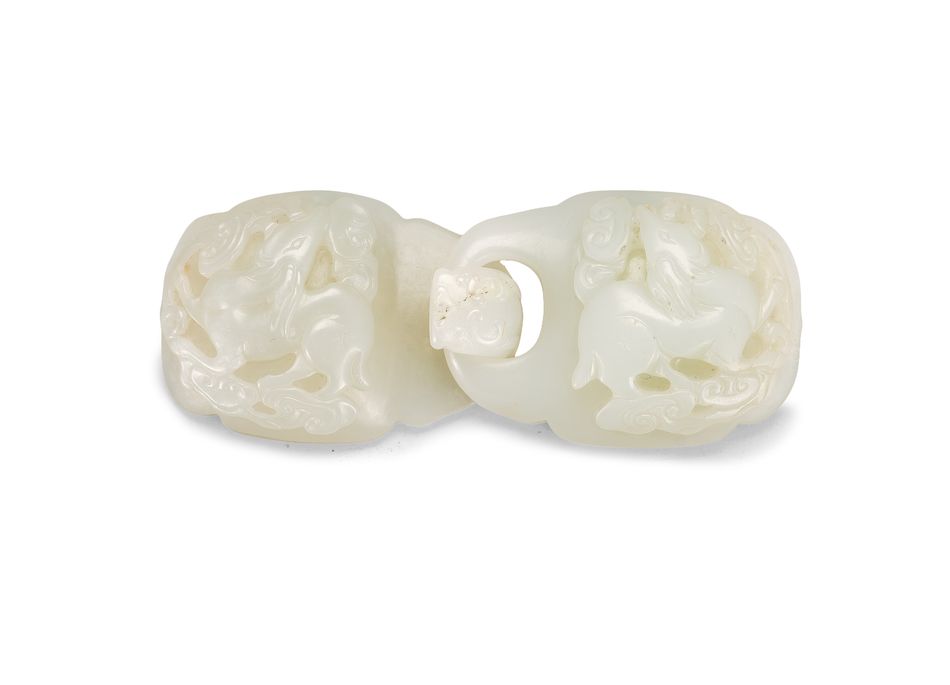 清 白玉「瑞鹿銜芝」帶扣