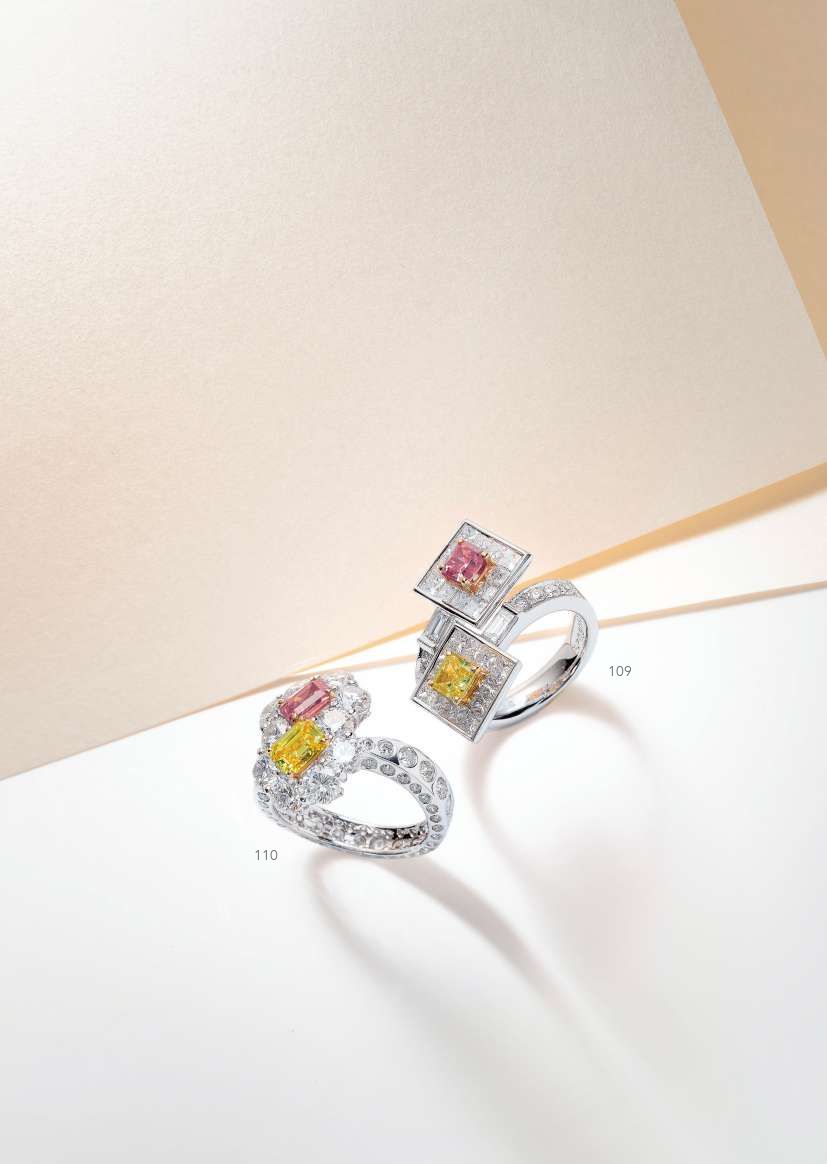 0.50克拉濃彩粉紅色鑽石配0.51克拉正彩黃色鑽石戒指,附GIA證書