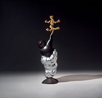 中國美術館館長,范迪安曾撰文「圓融之境─李真的雕塑世界」(《尋找精神的空間,李真中國美術館個展》畫冊,亞洲藝術中心,2008,頁4-5)一文評論李氏的藝術,而「圓融」一詞出自「大乘止觀」,有破除偏見、圓滿通融後便可悟道見佛。李真圓融的雕塑作品融合了西方簡約的藝術形象,而墨黑的身軀與表層細緻的質感更顯得其作品當代感強烈,他破除了既有的法相藩籬,以獨特的造型表現原屬於東方的雕塑主題。而此作《攀龍燭》是為「夜光盈昃─天燧」系列作品,靈感來源為李真點燃家中佛堂燈燭而得(李真台灣大型雕塑首展,2011亞洲藝術中心,2011,頁200)。手持降龍燭台,面貌怡然從容,如古代賢士般清風瀟灑,姿態輕盈包覆在白色雲狀底座,更似騎雲而來的仙人;李氏巧妙且刻意地結合了「火」的元素,讓作品昇華為一座指引路途的明燈;而象徵生生不息的火也將作品本身轉化,成為一件富含生命力量的雕塑,更是李真嚮往文人雅士般德賢兼具的精神性作品。