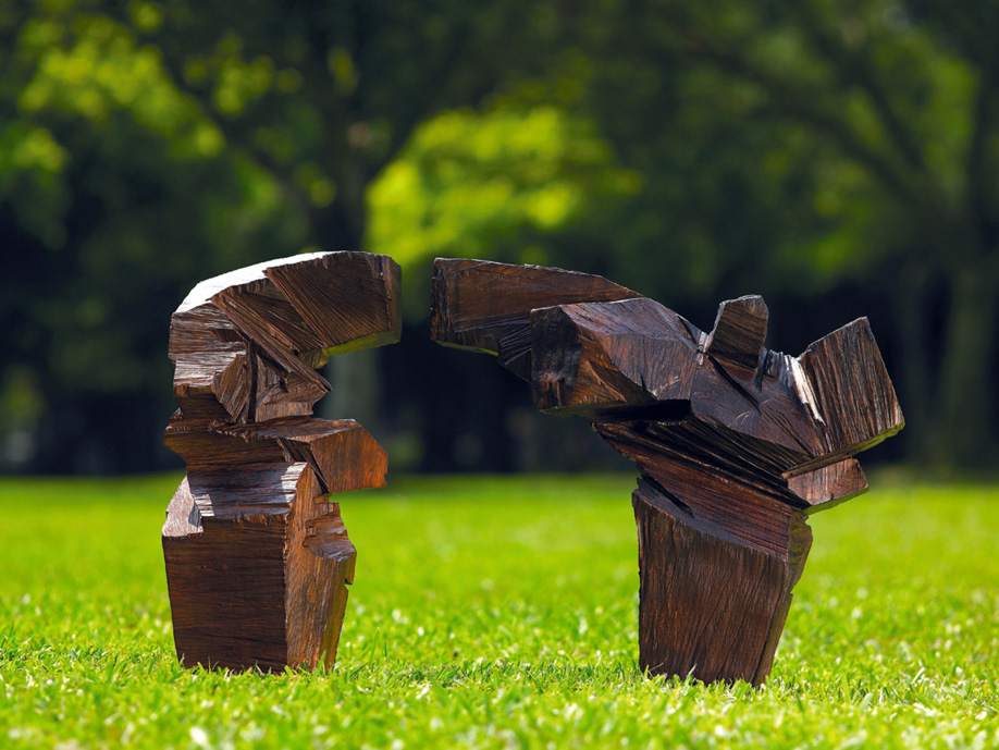 Vividness of expression is the hallmark of Ju Ming's sculpture. Arch of Taichi easily belongs to the artist's most mature work. While at first glance these pieces seem to be just what the title implies, arches of various types and forms, they in fact evolved from representations of two adepts exchanging 'blows', i.e. jointly practising the formalized postures and moves of taichi. What Ju does is to take these already highly abstract movements and further sublimate them to the point where only dynamic lines and shapes are left - the force that went into the energetic strokes of his carving knife invests the finished pieces with their momentum and pace without sacrificing solid tangibility. Going far beyond acquired skills and predetermined forms, Ju attains a level of quintessential simplicity that directly communicates the life force in all its archetypal splendour. This lot features all the central qualities of the artist's sculpture in miniature form, allowing even observers with no previous knowledge of shadowboxing an intuitive understanding of the 'art of taichi'.