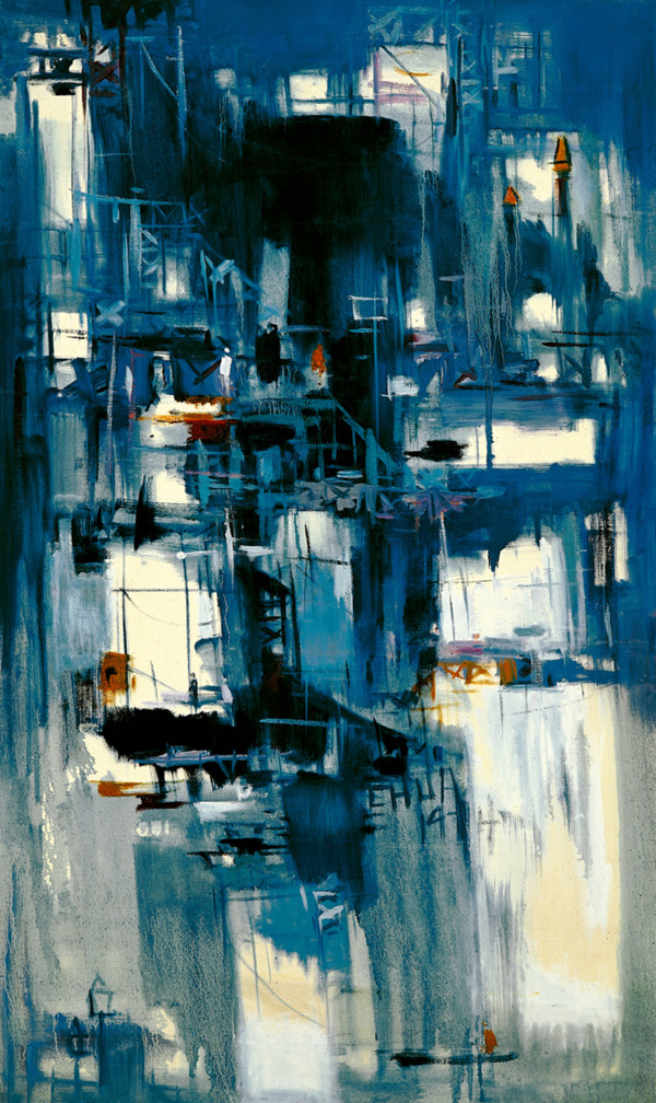 Looking at Chua's brilliant works of Iron Bridge and Riverbank which were created in 1974, one will realize that Peralta's prediction is quite true. In the work combing the theme of "iron bridge" with that of "river bank," the painter seems to give a Western oil painting the look of a Chinese water-ink painting. He treats blue with black ink and lets oil paints naturally play up and run through a canvas on their own courses. Meantime, he also uses "white space" to create a contrast between darkness and brightness in order to give a sense of space. With strokes, it enhances the painting with a sense of "force and energy". Such an arrangement gives the whole painting an indescribably dream-like and indistinct beauty.