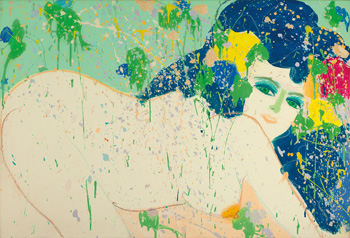 《我想雙唇鮮美》為畫家1974年代的油畫代表作品,它延續早年抽象主義滴流潑灑的風格,優雅閒適的裸女婀娜而感官的形體呈現出美好的律動,如水一般婉轉動人。
