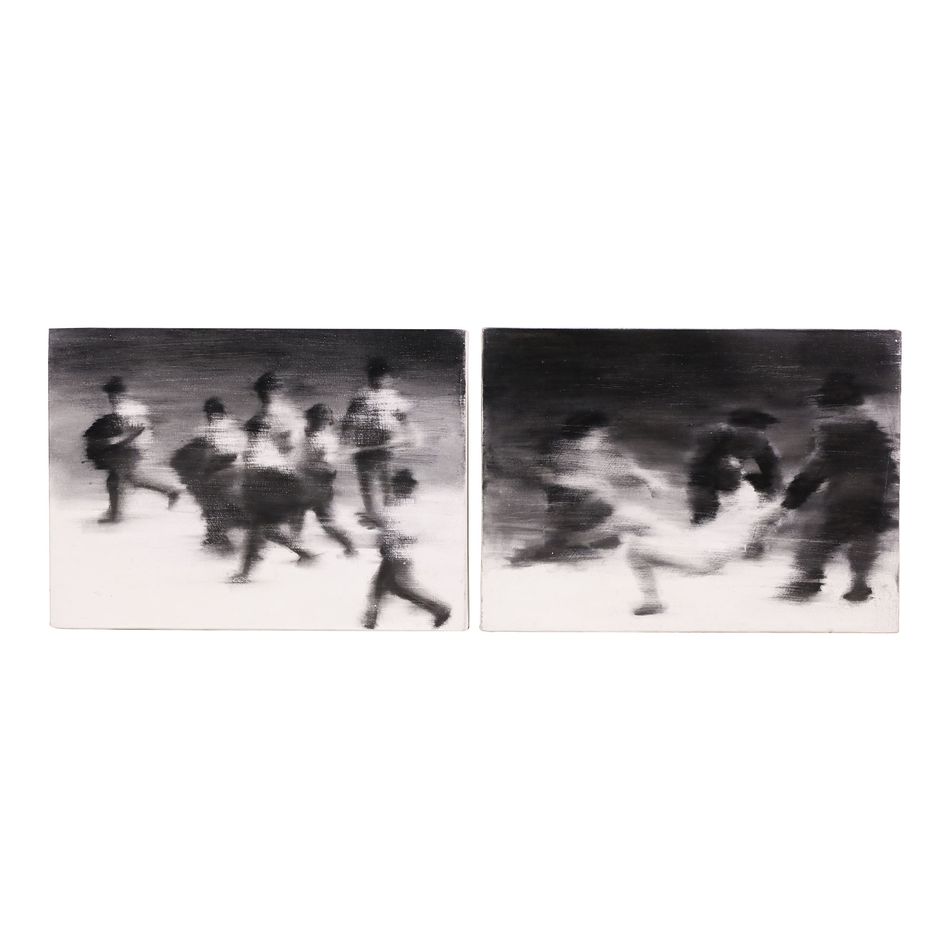 賴威宇1989年出生於台北,畢業於台灣藝術大學美術研究所,作品曾獲國立臺灣美術館典藏,並穩定舉辦個展及參加聯展。賴威宇的繪畫作品一直以來都以幽默詼諧的面相呈現強烈複雜的情緒感受:恐慌、憤怒、孤獨、悲痛、狂歡…,並將之在個體或群體中相互交織至於難以辨識其確切向度,進而延展成更為混沌的焦慮集合──而賴威宇也不斷尋找這些焦慮的載體,因而發展出許多系列主題及手法。本拍場此次呈獻的系列拍品是賴威宇日記一般的生活記述,譬如對社會事件的描寫與反思。藝術家刻意以炭筆這常見於速寫的媒材,以猶如照片一幀一幀的小尺幅,抹去了畫面中許多細節和可供辨認的實際場景,更純粹的顯現了日常周遭或各種媒體上所見的各種事件,失焦且失速著。藝術家大量紀錄這些歷歷在目的過往記憶,提取並封存在畫面中,以相對輕巧幽默的姿態承受著生命中之重。