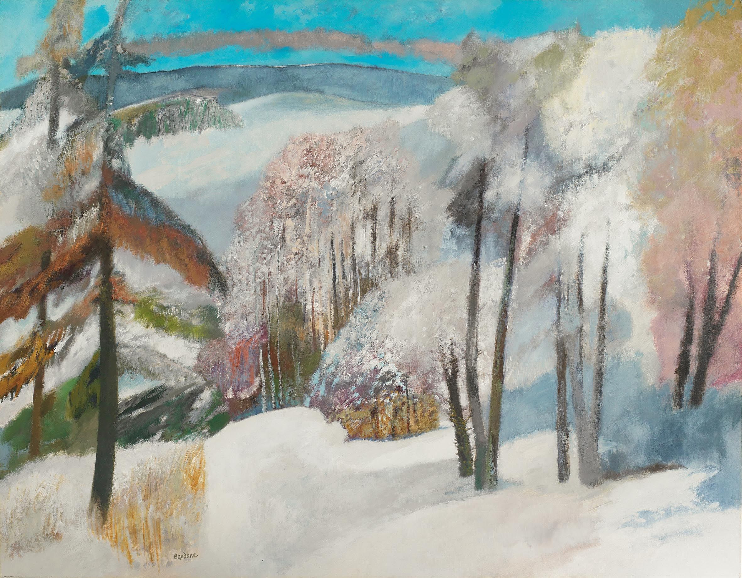 題識畫背框條:80F/91 LE VALLON GIVRÉ - PYRÉNÉES -