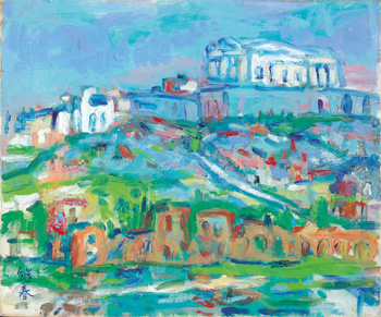畫家陳銀輝曾如此撰述描寫廖繼春的作品《希臘古蹟》,文中寫道:「此幅雅典的衛城,可能是從對面的布尼克斯小丘畫過來的。右上建築物是萬神殿,左上是衛城的進門市羅比萊亞,下面土黃色的建築物是音樂堂。由上面兩個白建築物及丘陵下橫長的土黃色建築物所構成的這幅畫,以灰色調統一畫面。調子雖然柔和,但山上的兩個白建築物成為此畫重點,再加上畫面的草綠色與紅的筆觸,使畫面活潑而不致於單調。本來古蹟現場色彩並不強烈,而近乎灰色調,作者可能為了表現現場的氣氛而使用灰調的吧!構圖上作者以一條白的小徑連繫上下橫長的建築物,確是得當的主意」。(陳銀輝,〈希臘古蹟〉(作品介紹),《廖繼春畫集》,國泰美術館,台北,1981年3月出版,頁200)