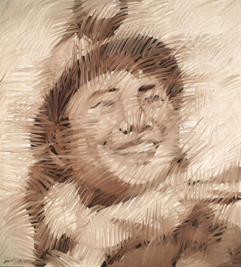 作為中國當代藝術的代表性人物,岳敏君的創作立基於他對身處之當代境遇的敏銳思考,在其著名的瞇著眼睛裂嘴大笑的自畫像系列之外,進行多年的「處理」系列繪畫,是另一個與藝術家內心有著更為深沉連結的創作軸線,2004年的《處理-16》即為此系列之重要作品。