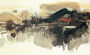 1955年離開台灣前往巴黎發展的朱德群,初期仍以具象風格創作,創作過幾幅人物肖像,寫實技法細膩,參加春季沙龍展獲得獎項。不久,具象畫愈畫愈少,全部心思精神轉而投入抽象畫研究,狂熱的創作讓藝術評論家激賞,1958年開始在巴黎的畫廊發表抽象畫,同時有多家畫廊產生興趣,後來他與專門展出抽象藝術的勒讓特畫廊(Galerie Legendre)簽下六年的合同,生活有了保障,得以專心繪畫。而勒讓特畫廊的藝術主任巴聶(Maurice Panier)眼光精準,1944年曾為康丁斯基(Kandisky)在法國舉辦個展,鼓舞他的晚年時光。他讚美朱德群是善於運用顏色的畫家,油畫構圖嚴謹。