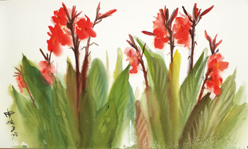 水彩作品《美人蕉》既有民俗的審美,亦有文人畫的墨韻,花莖挺秀俐落,碧翠綠葉水氣淋漓,烘托宛如美人之姿的花容,煞是娟麗大方。席德進的花卉畫充滿柔美浪漫的氣息,精湛的畫功處處可見大師痕跡。 席德進歷經過傳統工藝、西洋素描、油畫、粉彩、水彩等技藝磨練,在華人畫壇佔有一席之地。前期他以肖像畫、鄉土畫展現生命熱情,而在生命的後期,他關懷改革中國畫,建立獨樹一格的水彩畫風格,總結出一生藝術追求的結果,在美術史上留下璀璨的篇章。