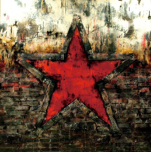 《紅星》畫面上強烈的紅五星呈現在雪景與經文版之間,畫面協調,但意義上有著衝突。在他的作品之中,衝突無處不在,這種衝突,強調力量與和諧的相關性和對比度,從書法系列,到曼陀鈴系列、經版系列、雪域系列、紅五星系列,一方面是高昂的鬥爭精神,一方面又試圖回歸內心,獲得平衡。完全不同的道理,人生的紅與黑,都容納其中。藝術家將西藏古藝術融入當今的時代語言,營造現代裝置的格調。在動感的筆觸與溫暖的色調下,表現了強烈的人文關懷。