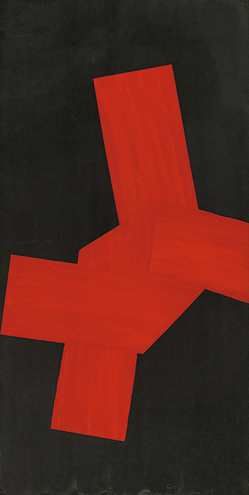 深尾力三的大尺幅畫作,只以紅色及黑色進行創作,結合歐洲傳統油畫以及日本傳統印刷工藝的精神,創作出特殊的質地及紋理。在具有張力的幾何形構圖中,呈現出富現代感的禪意。作品大器且深刻,因而頗受歐洲及日本藏家青睞。