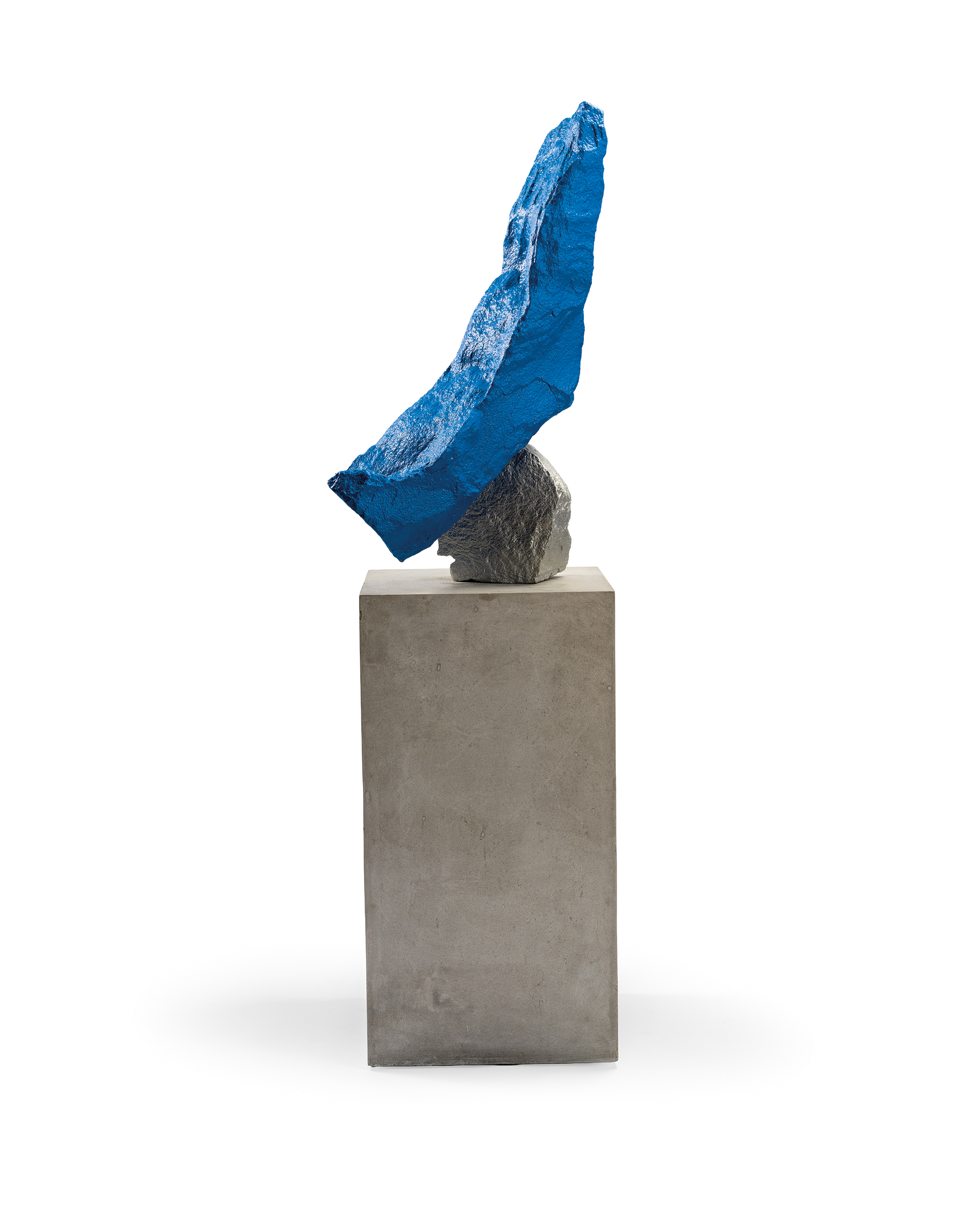 烏戈.羅迪諾納《銀藍山》2015 石雕上色 不鏽鋼 台座 (單一件) 70(長) x 42(寬) x 160.5(高) cm (含台座)