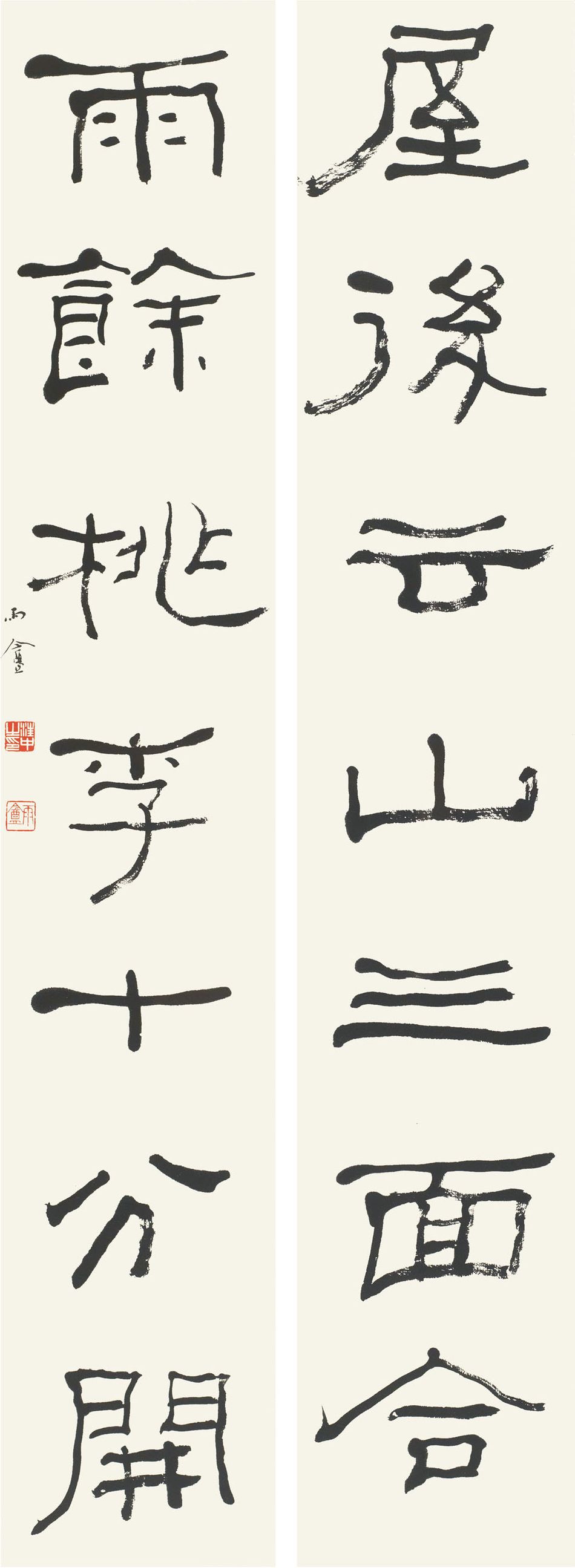 釋文:屋後雲山三面合,雨餘桃李十分開。