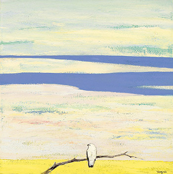 Signed on the reverse Yang Din in English, titled Sérénité inscribed 100 x 100 cm and dated 2009