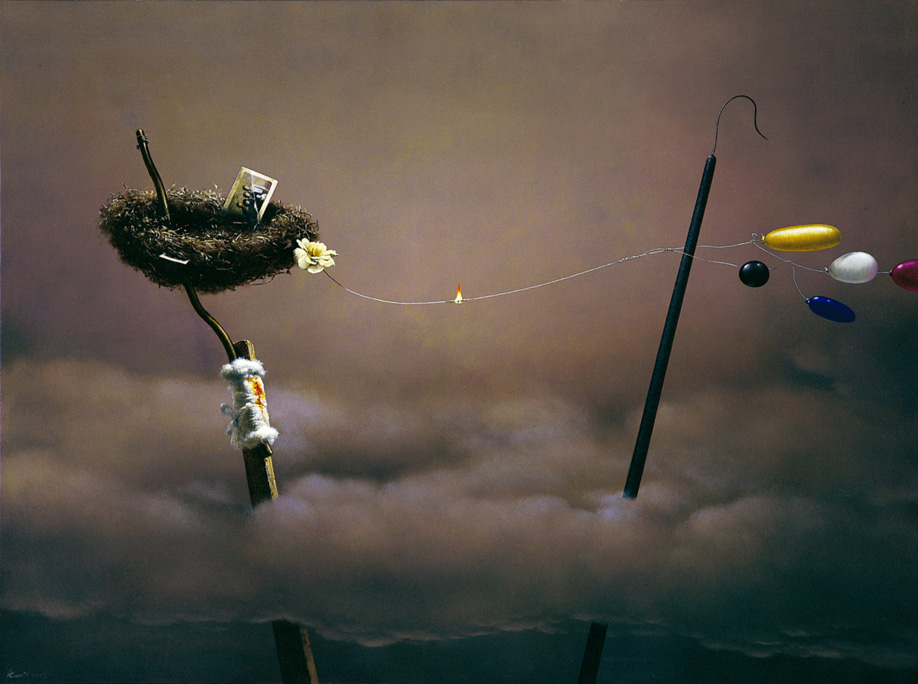 Titled on the reverse Nest and signed Kuo Wei-guo in Chinese, dated 2005 in Chinese and size 97 x 130 cm