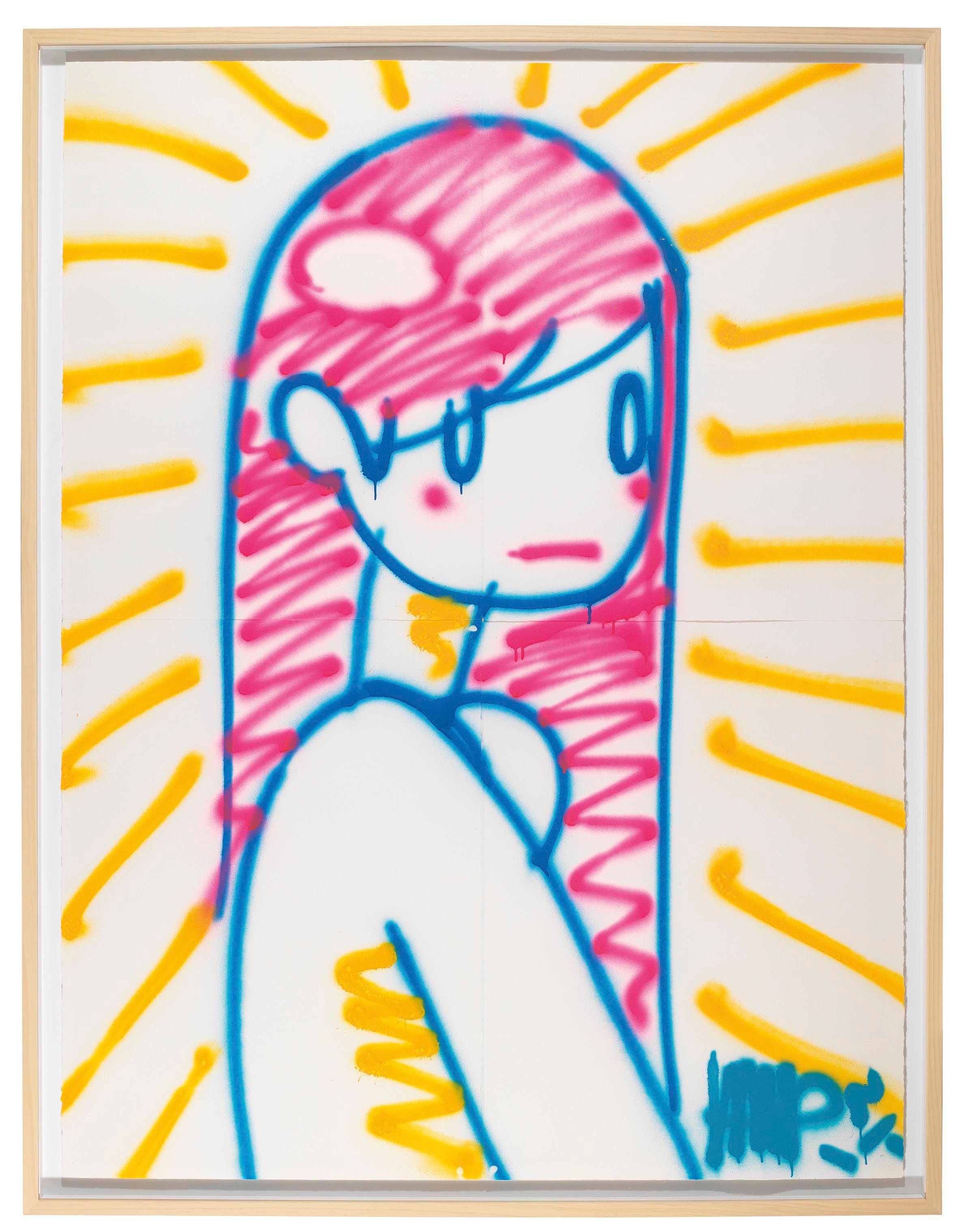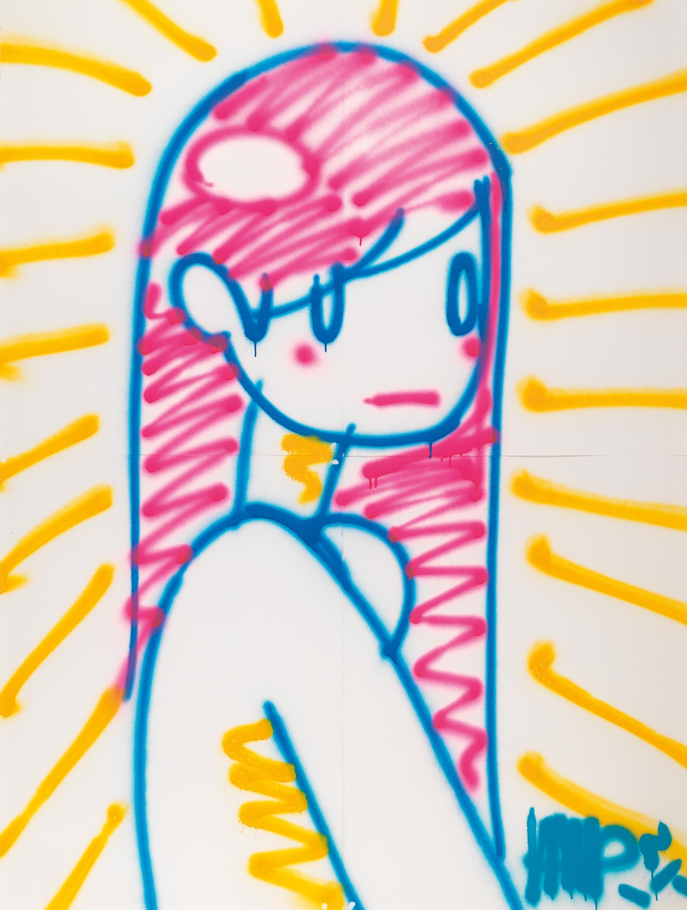 天野タケルTakeru AMANO (Japanese, b. 1977) ,日本東京市人。1997-2000年間曾赴紐約修習版畫技術,亦曾旅居羅馬、巴黎,作品饒富西方古典、當代藝術、與日本傳統文化根源互相交融。天野タケル曾說:「我取經典藝術的代表人物、聖母主題,賦予他們更現代的頻率。」借用如維納斯、大衛等經典符號,重新挑戰以個人風格詮釋。隱藏在「符號化」的圖像之下,是探討偶像與繆思之間,當代社會越趨「同質性」的視覺審美。融和浮世繪和超扁平風格,大面積平塗,手繪比擬精密印刷的平滑質感。細邊線與陰影色差,營造三維立體感。卡通化的人物五官,精練簡潔。透過肢體動作布局,與觀者傳達不同的氛圍情緒。早期作品有電視卡通,賽璐璐片手工風格;近期傾向潮流藝術,螢光色系的噴漆線條,自成一格,辨識度極高。