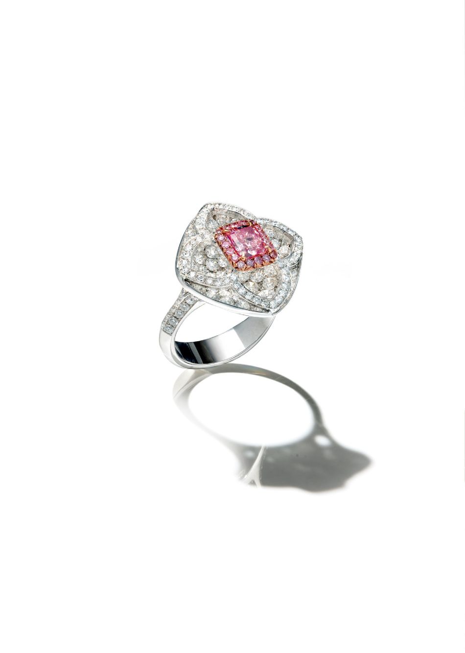 1.01克拉枕形正彩橘粉紅色鑽石配粉紅色鑽石戒指,附GIA證書