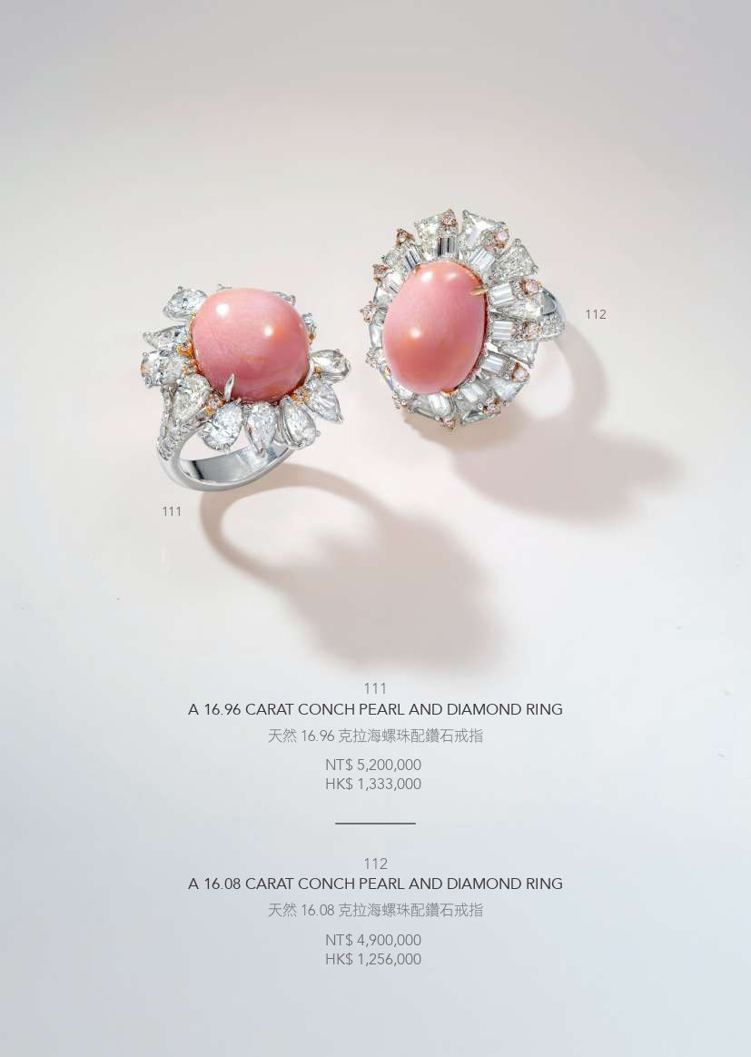 天然16.96克拉海螺珠配鑽石戒指