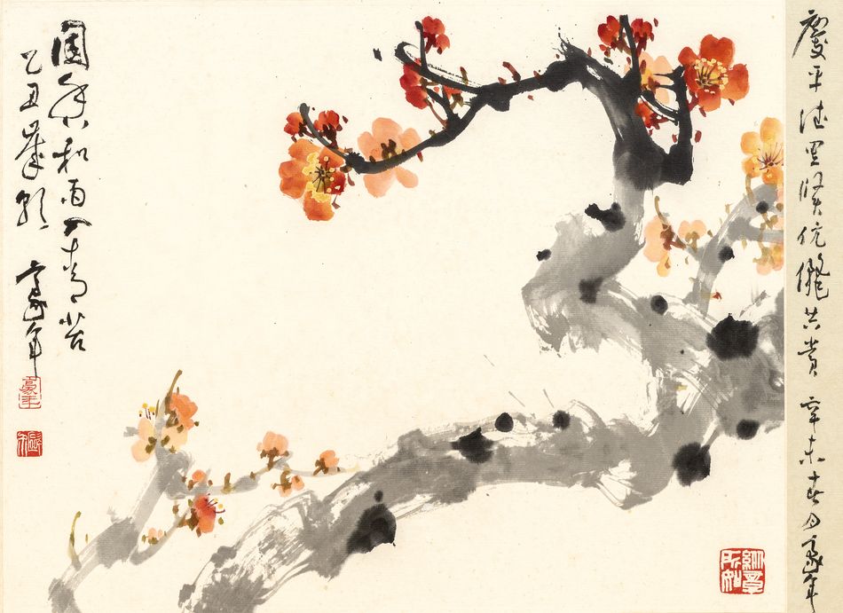 (上)乙丑歲朝,豪年。慶平法家賢伉儷共賞,辛未春月,豪年。