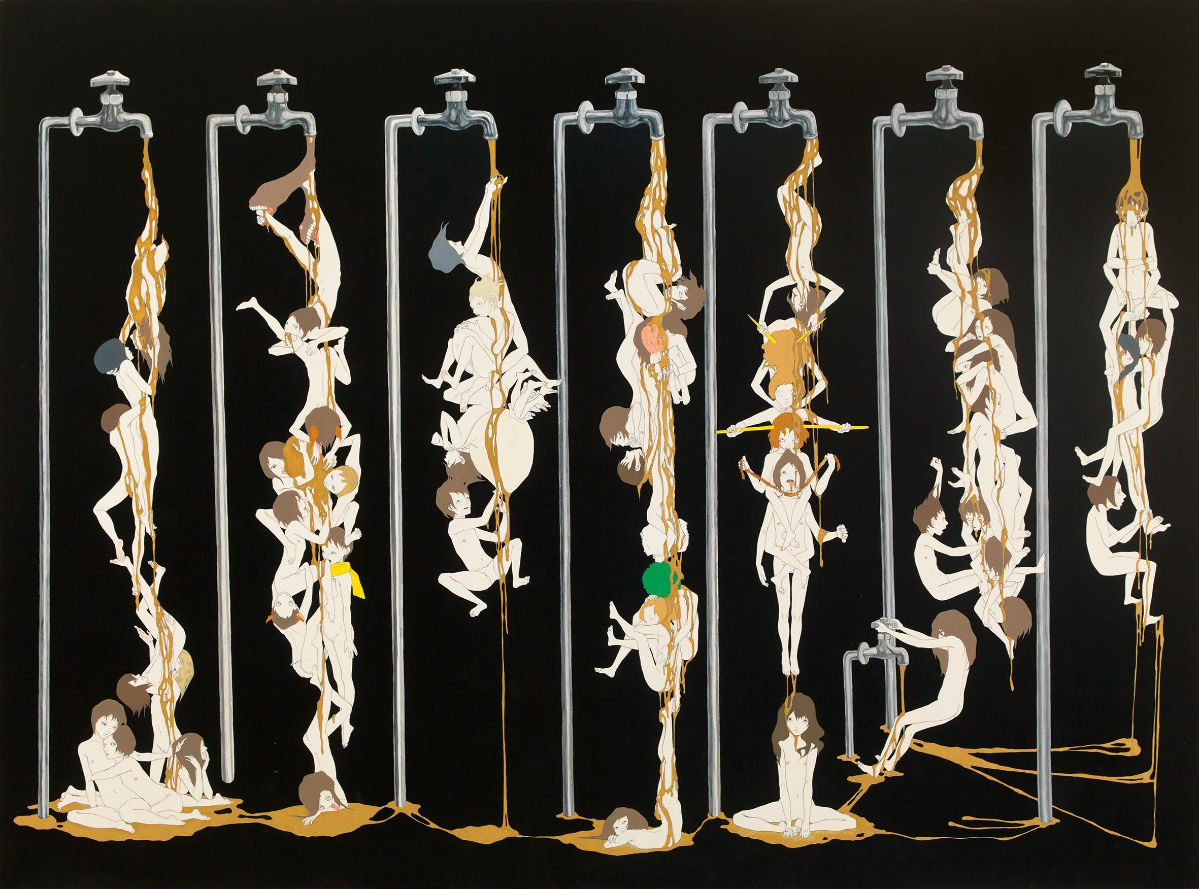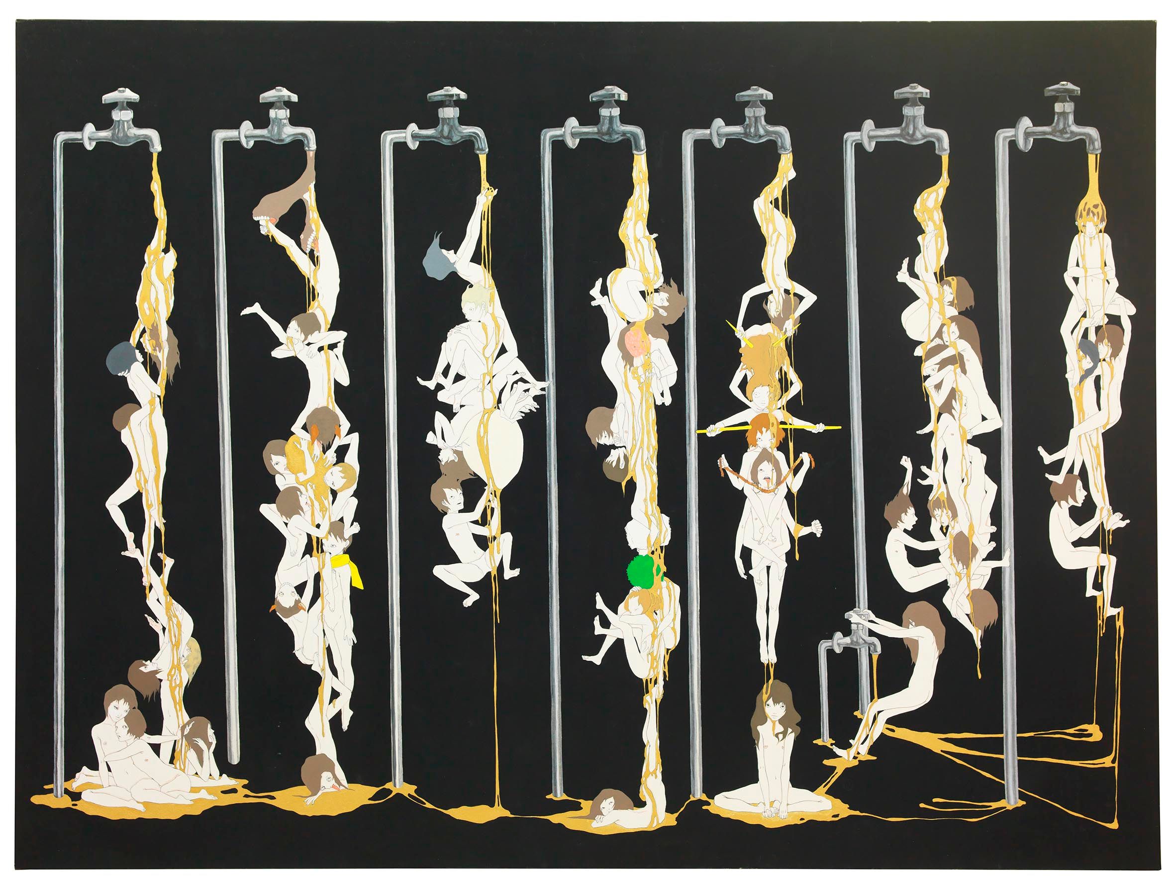 永島千裕於1983 年出生於日本靜岡縣,並於2006 年畢業於京都嵯峨藝術大學油畫學系。其多以明亮的壓克力顏料精細描繪,畫面中如圖騰,帶有漫畫感的圖案,像是每天出現在社群網路上大量的信息碎片,也像萬千神靈的精神。
