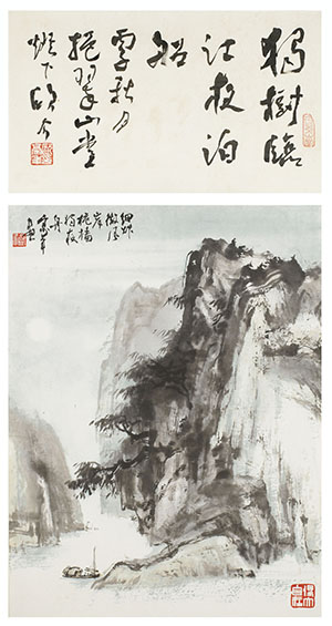 款識:獨樹臨江夜泊船。丙子秋月,挹翠山堂燈下,歐介。(上)