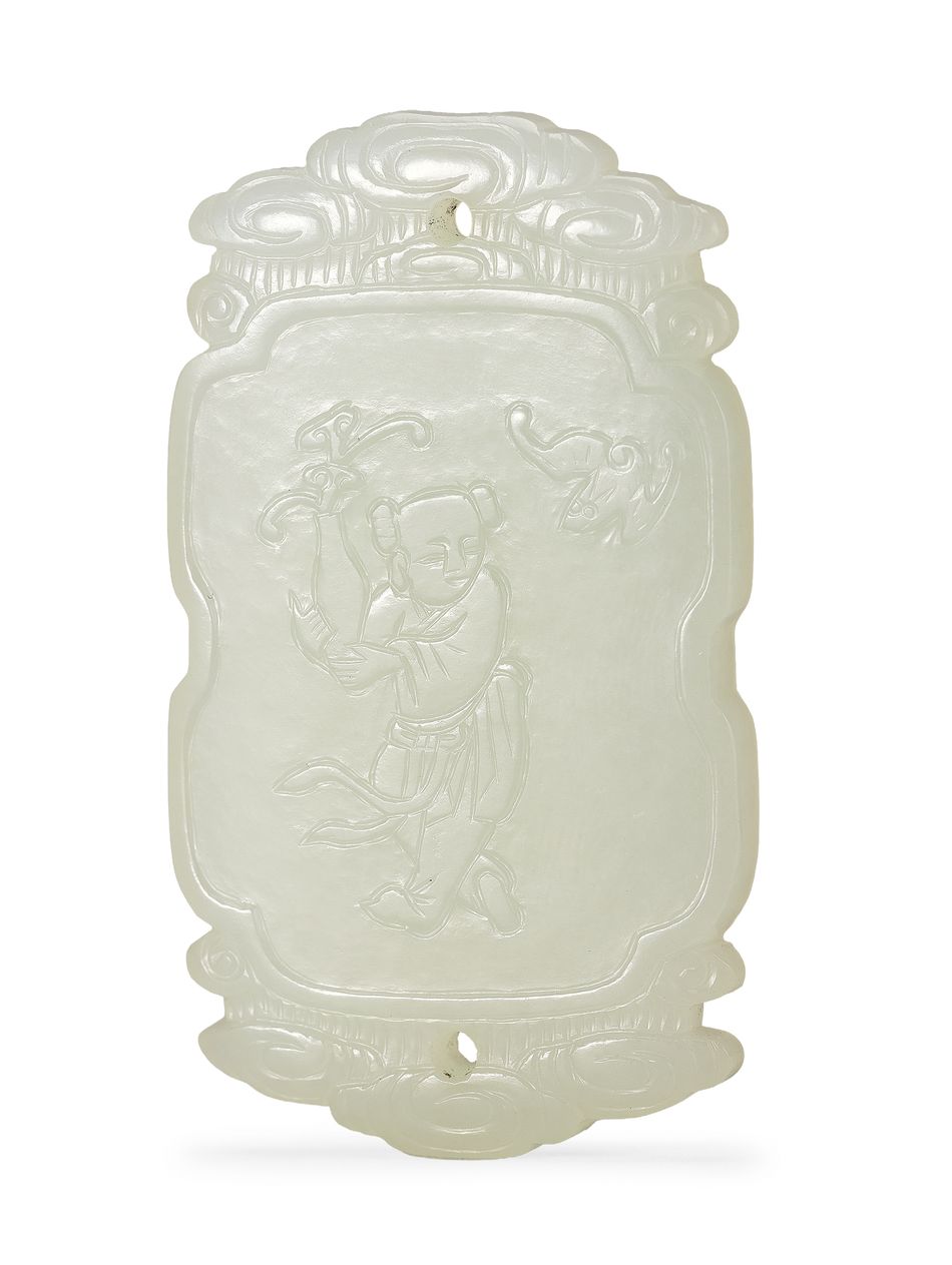 清 白玉「福壽綿長」牌