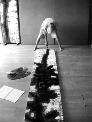 《飛天》三聯幅如行雲流水般流暢,帶有東方的情懷,也具抽象表現的形式。然而,隱藏在黑色筆觸中崩解的傢俬,斷裂的窗花剪紙,何嘗不是藝術家對經典文化的追尋與喟嘆呢?蘇東坡有言:「寄浮游於天地,渺滄海之一粟,哀吾生之須臾,羨長江之無窮;挾飛仙以遨遊,抱明月而長終。」藝術家近年的審美思考,融入更多的禪意哲思,效法古人的自在胸懷,企求心靈得以同飛仙逍遙翱翔。