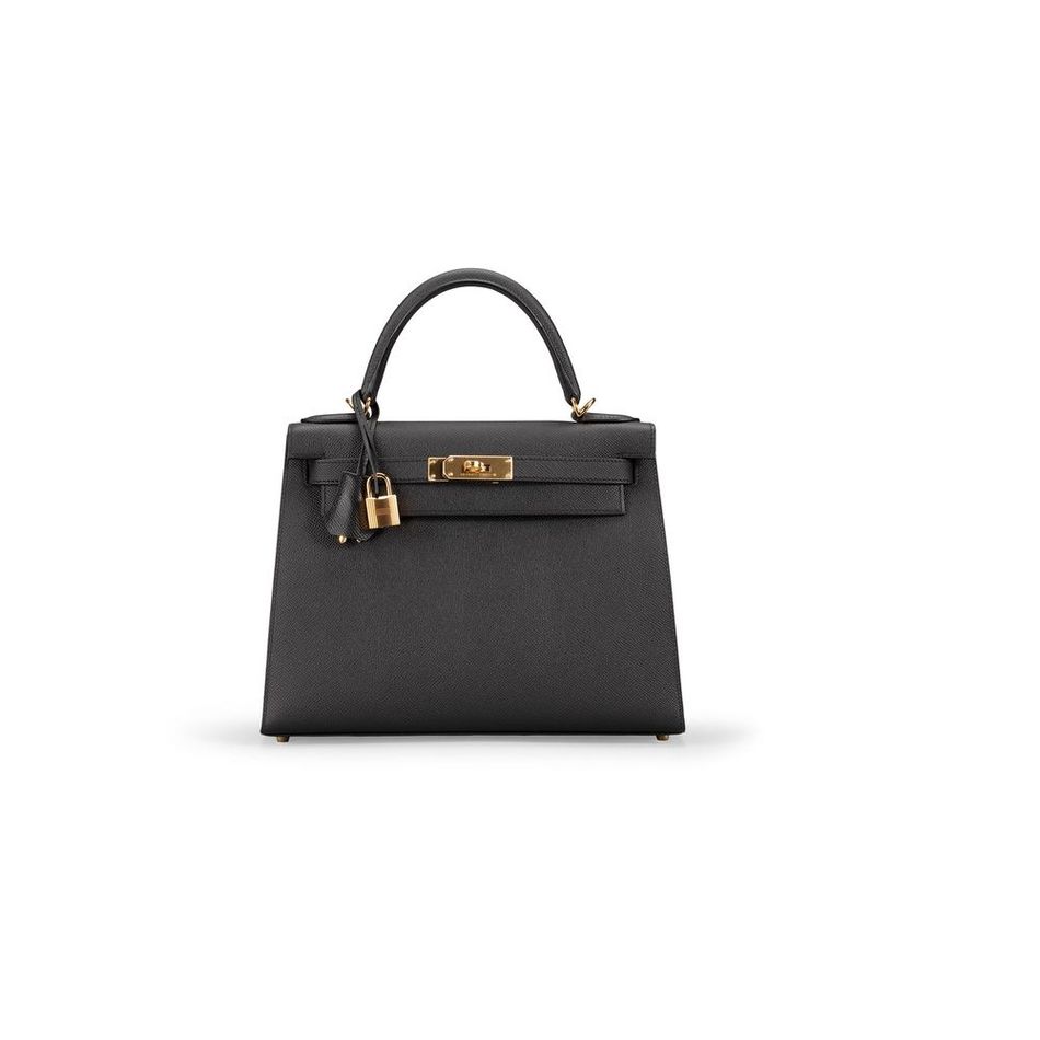 黑色EPSOM牛皮25公分外縫凱莉包附金色金屬配件