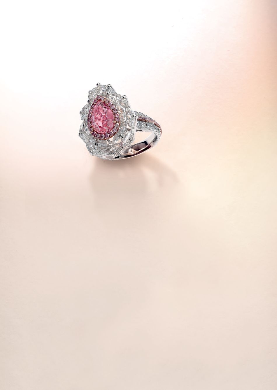 2.02克拉梨形濃彩粉紅色鑽石配粉紅色鑽石戒指,附GIA證書
