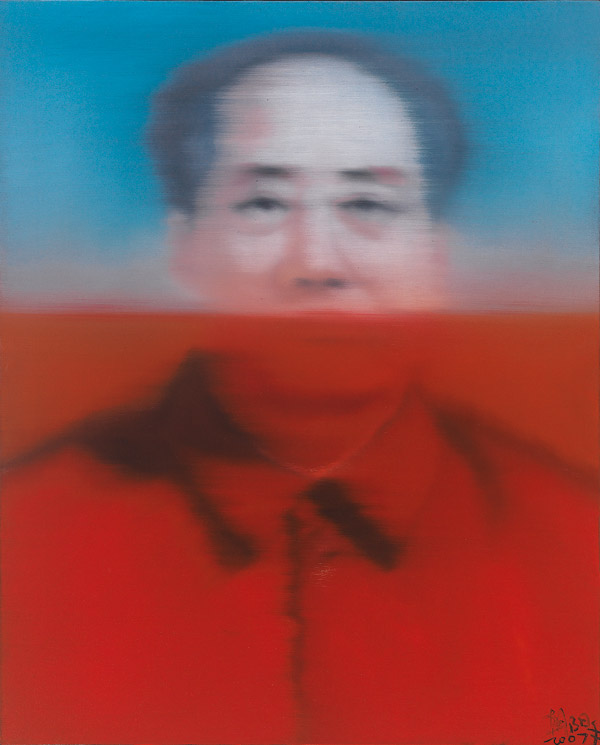 尹朝陽以自己的經驗解讀並敘述著一個輝煌的時代的形象。他以自己獨有的氣勢,在眾多以「毛」為題材的作品中獨樹一幟。他以不同背景創作的毛澤東常常像一個寓言,即使如同這幅如此簡單構圖的《毛澤東(藍紅)》,以顏色對比烘托出人物形象的體態和氣質,基本上呈現兩大色調:紅色和藍色。紅色是代表與共產主義政治立場一致狀態的符號。在傳統的中華文化,它也有積極的聯想:財富、生育、幸福和成功;而藍色代表著一個光明的未來,象徵著一個新時代。與此同時,這兩種基礎色的使用能激發起如馬克.羅斯科般對純淨顏色的探索,賦予所繪肖像比寫實手法更深的情感共鳴。