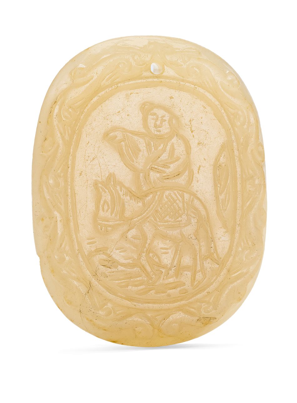 19世紀 「童子騎驢」詩文玉牌