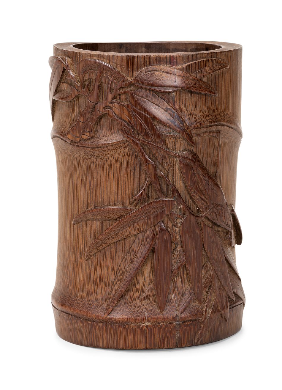 清 竹雕竹葉筆筒