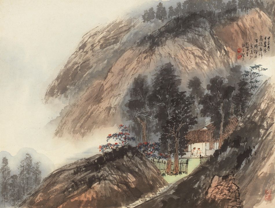 款識:甲子冬日畫為高橋廣峰並晞指正,