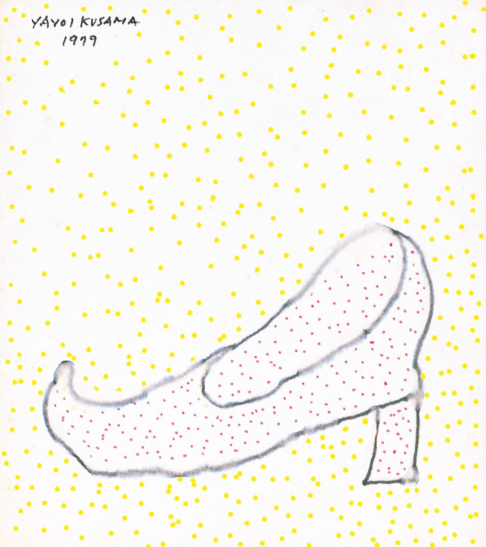 Signed on the reverse Yayoi Kusama in English, titled High Heel in Japanese, and dated 1979