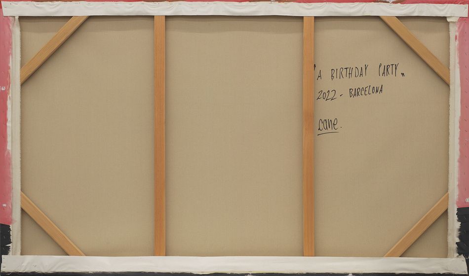Signed reverse Cane, titled A Birthday Party, inscribed Barcelona and dated 2022