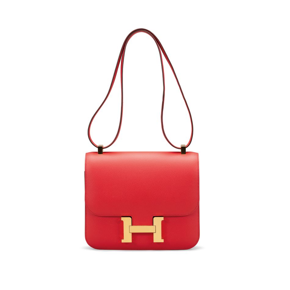 九重葛紅色EPSOM牛皮24公分CONSTANCE包附金色金屬配件