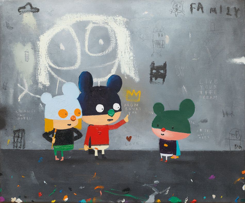 1977 年出生於西班牙馬德里,艾德加.普連斯蓄著絡腮鬍子,已經是丈夫、父親,活躍於社群媒體。他的作品頗有童趣,叛逆的,顫動的線條,有意無意淡淡的幽默令人會心一笑,然細看微妙的造型與色彩、其中隱然鋪陳的寓意,深深打動新世代藏家的心。過去短短兩三年間,他迅速成為潮流收藏家追逐的明星標的。翻開普連斯的創作經歷,簡單而不複雜,半是素人半是學院,按照他的算法,創作歷程應該超過四十年了。跨越國界的限制,普連斯的作品已有全球多個公共機構收藏。「童年不應該結束,我們要像那些想與眾不同的孩子一樣繼續夢想。」大孩子藝術家艾德加.普連斯(Edgar Plans) 如是說。