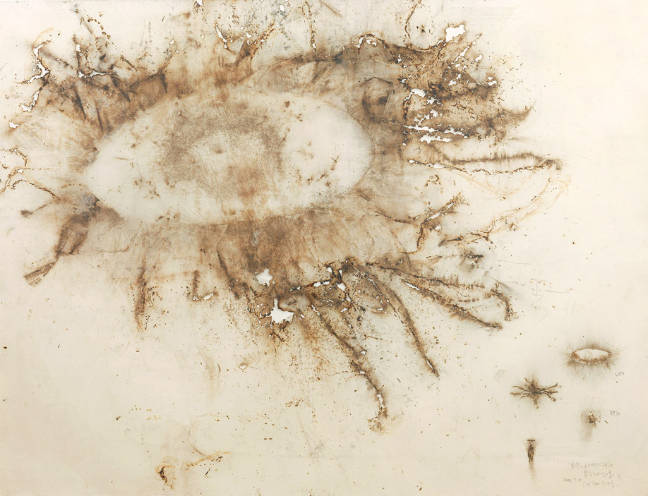 蔡國強從不滿足於使用畫筆和顏料。年輕時即嘗試多種技術媒材,拓展在平面空間進行藝術創作的界限。例如把畫布塗滿顏色,然後啟動電扇將顏料吹成漩渦形狀。泉州是中國火藥工業中心,因此蔡國強非常瞭解這種熾烈的物質。在日本期間他能接受日本文化,但身為外國人,他總保持旁觀態度,那時他開始喜歡火藥的特性。火藥蘊藏著巨大能量,同時也無比美麗,在破壞的同時創造出極致的美。蔡國強相信破壞能帶來創新,因此火藥成為描繪自身信仰和情感的最佳媒介。不過火藥破壞力的確太過巨大,因此蔡國強最初計畫在帶廣使用火藥進行飛碟和神社的創作,此後他通過多種媒介進行火藥創作試驗。使用紙張是因為紙張對於燃燒最為敏感,能夠作出微妙細小的色調,捕捉到能量在剎那間釋放的情景。
