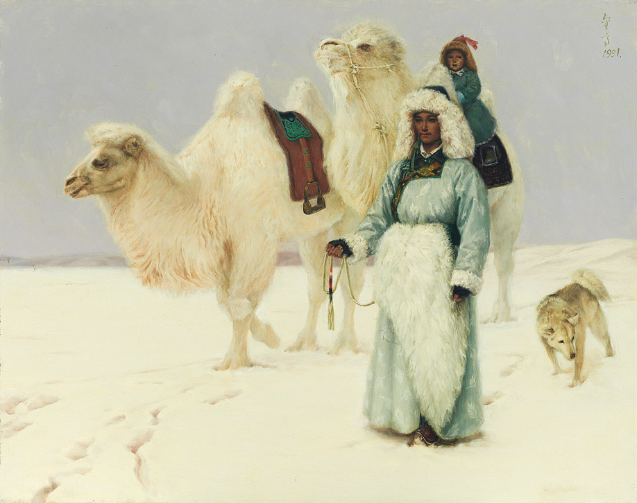 簽名畫背:JIN GAO A Timely Snow Brings a Good Harvest Oil on linen 1991