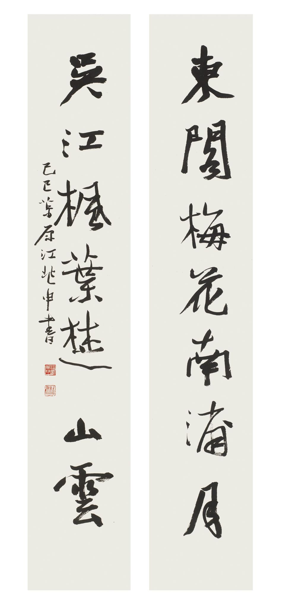釋文:東閣梅花南浦月,吳江楓葉楚山雲。